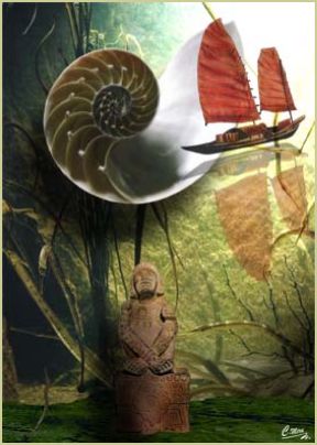 Pour mes treize ans, les prêtres Mayas de Chichén Itzà m'ont attaché à une lourde pierre et m'ont précipité dans les eaux glacées d'un cénote, en sacrifice au dieu Tlaloc. Pourtant, en touchant le fond du puits sacré, ma terreur se dissipe. Est-ce dû à l'effet de la drogue ? Ou bien suis-je déjà mort ? Ainsi y'a-t-il une grâce ultime pour les suppliciés, dans les méandres spiroïdes de leurs structures mentales, qui leur font échapper à l'indifférence et à la cruauté de leurs tortionnaires. Au-dessus de moi, je crois voir glisser la voile d'un vaisseau fantôme à travers mon suaire de cristal, comme une invite au départ vers l'issue d'un dédale de nacre. |