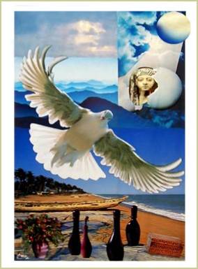 | Puis l'air sépara le ciel de la terre, il fallut partager le sec et l'humide, et encore vaincre les ténèbres et l'ignorance. Alors depuis l'oeuf cosmique isiaque, la nouvelle aux hommes fut annoncée, la plume se changea en oiseau, les offrandes devinrent libations. |  | |